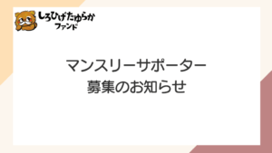 マンスリーサポーター募集 2025年12月末まで「マンスリーサポーター募集強化月間」として、継続的に応援してくださる方を募集しています。 マンスリーサポーターって何? 毎月定額の寄付で、NPO法人しろひげ・たゆらかファン […]