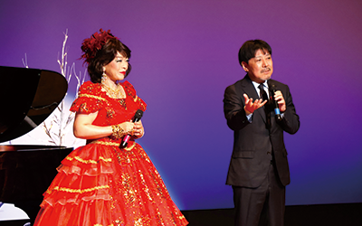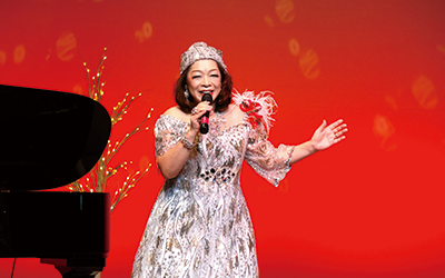 当日は、約200名のお客様にご来場いただき、「百万本のバラ」「愛の賛歌」「明日は月の上で」といったシャンソンの定番曲をはじめ、クリスマス時期に合わせた名曲と華やかで楽しいステージを約1時間にわたって楽しんでいただきました。