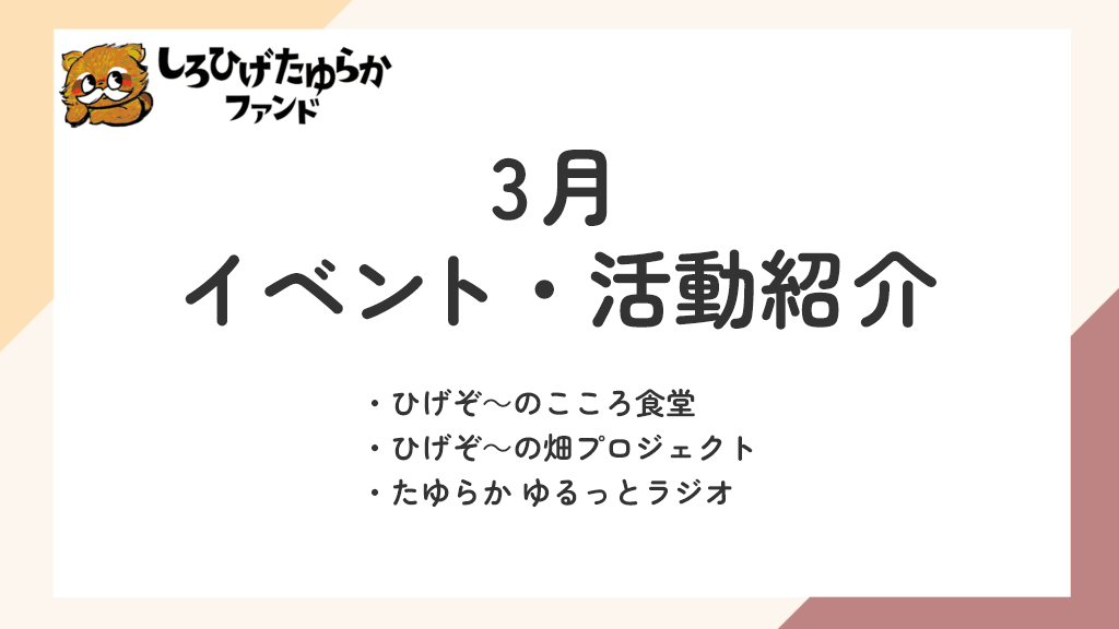 2026年3月に開催予定のイベント・活動案内をご案内いたします。